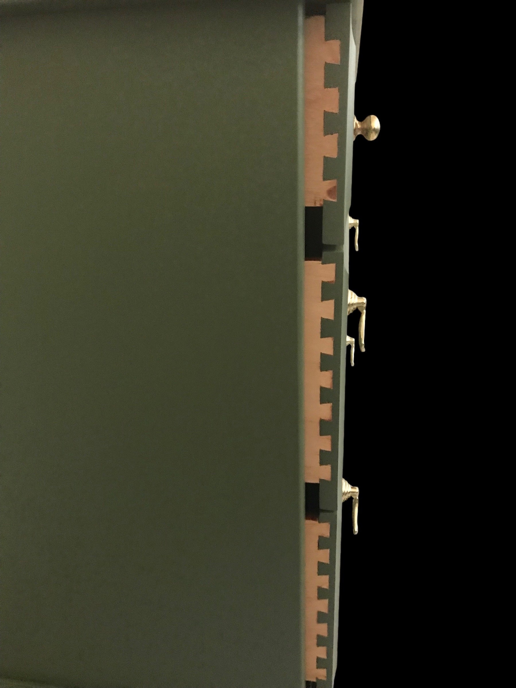The interiors of the drawers are cleaned, restored, and treated with furniture wax for rehydration.