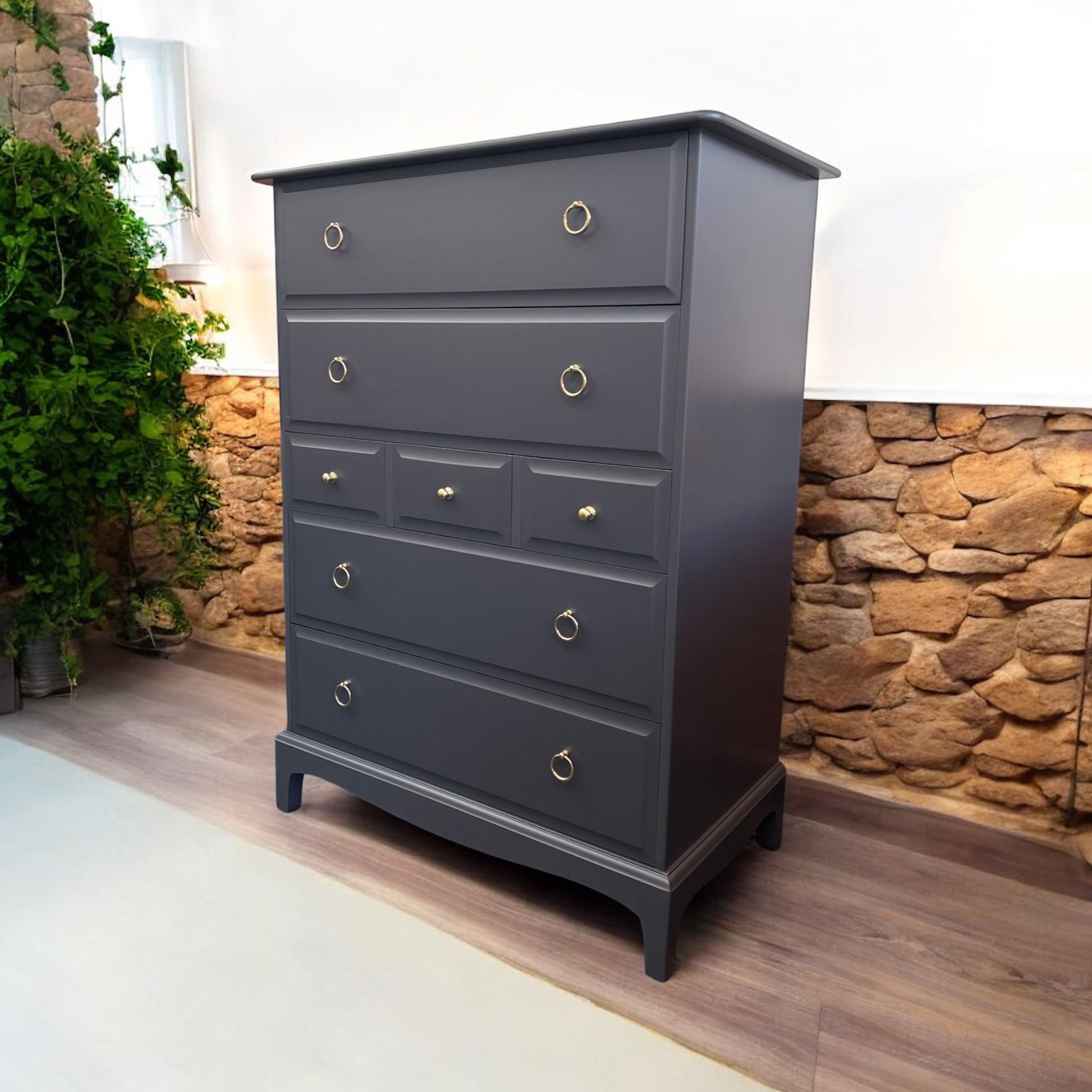 Vintage 1970s/1980s Newly refurbished Stag Minstrel Tallboy chest of drawers set of x 2 available for refinishing in your choice of colour. Matching furniture also available.