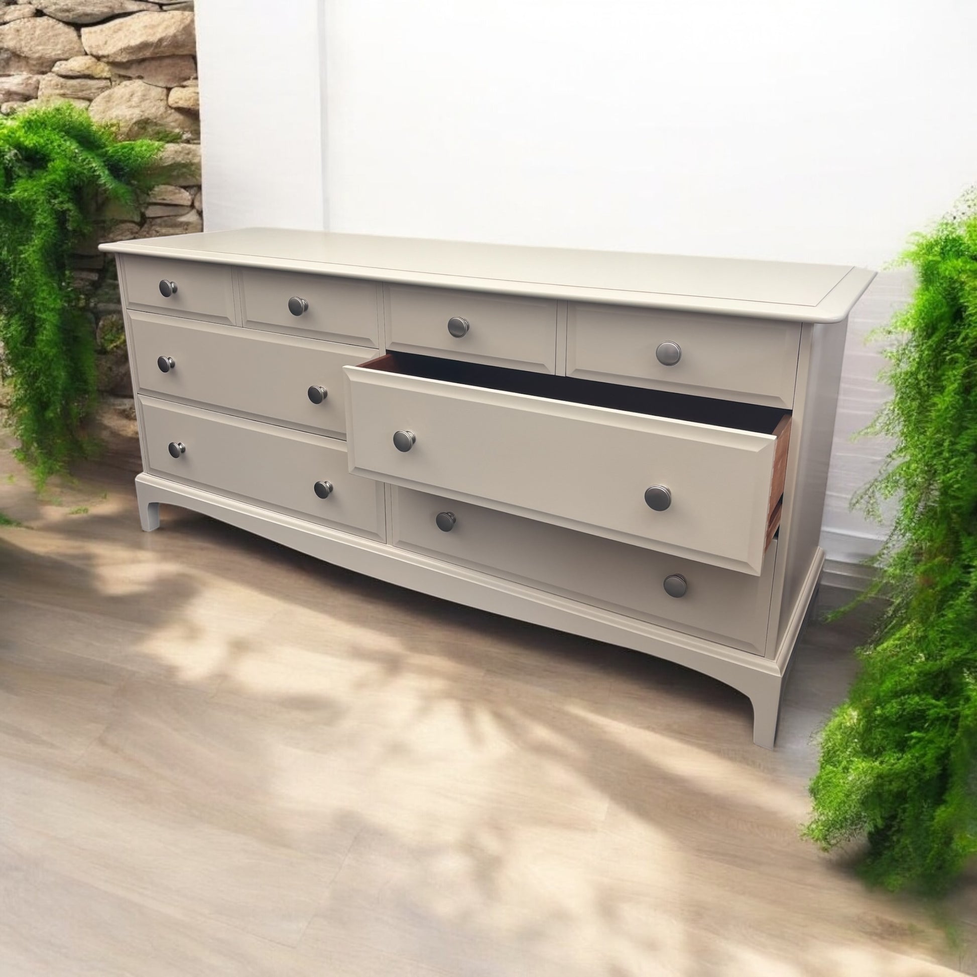 Vintage 1970s/1980s newly refinished Stag Minstrel captains chest available for refinishing in your choice of colour. Matching furniture also available.