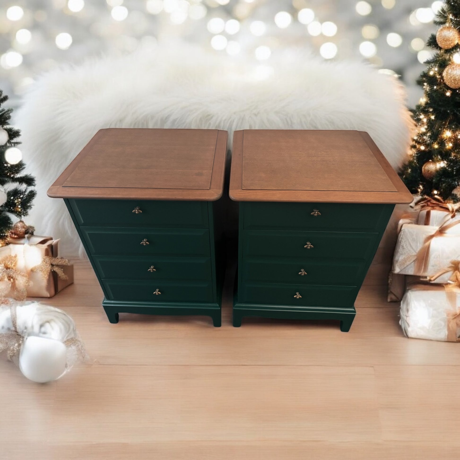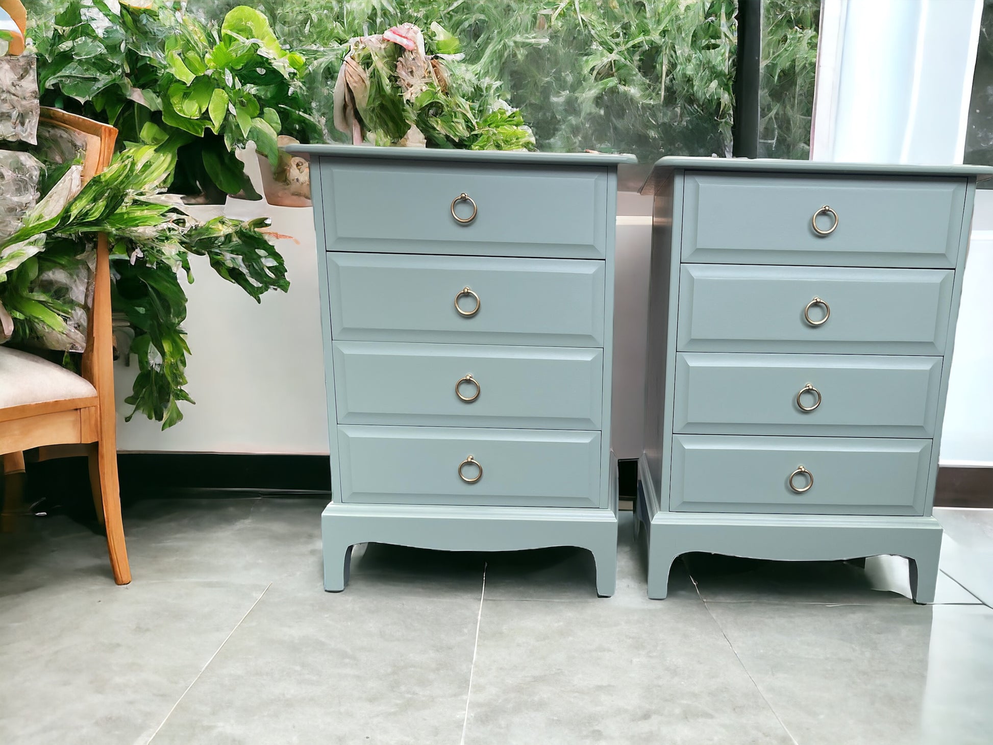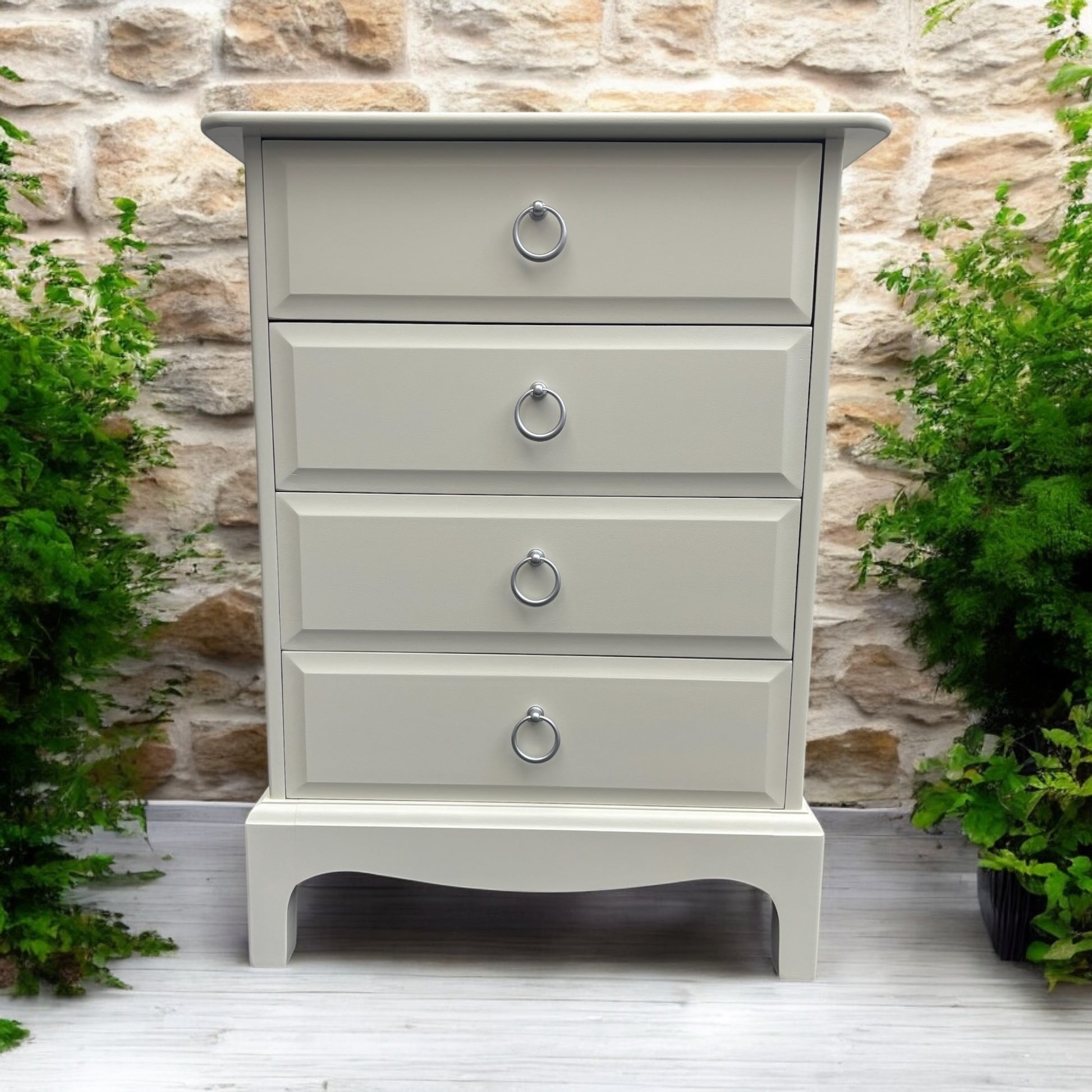 Vintage 1970s/1980s Newly refurbished Stag Minstrel pair of 4 drawer bedside drawers available for refinishing in your choice of colour. Matching furniture also available.